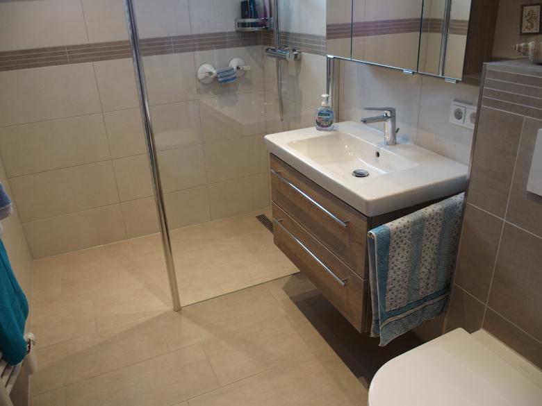 - ein freundliches, helles Bad mit einer großen barrierefreien Dusche.