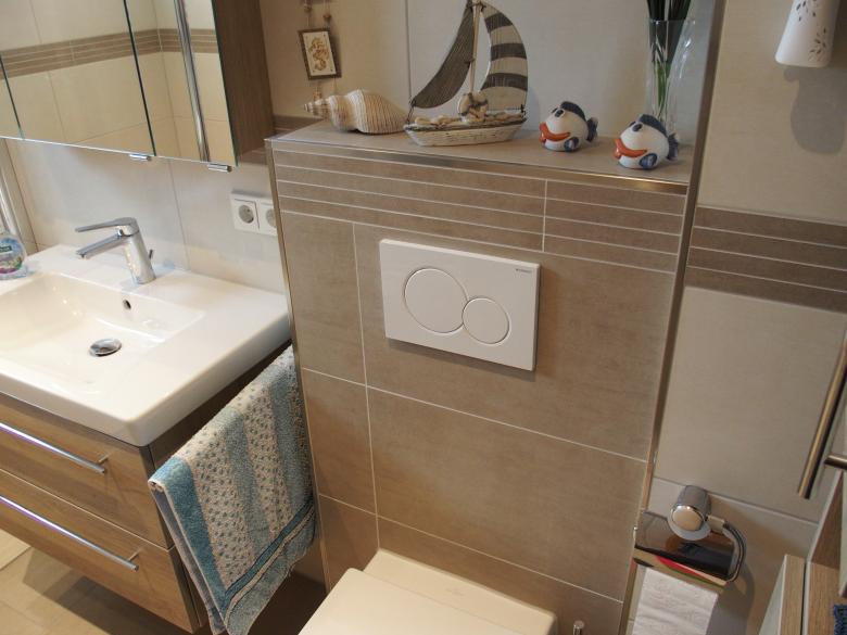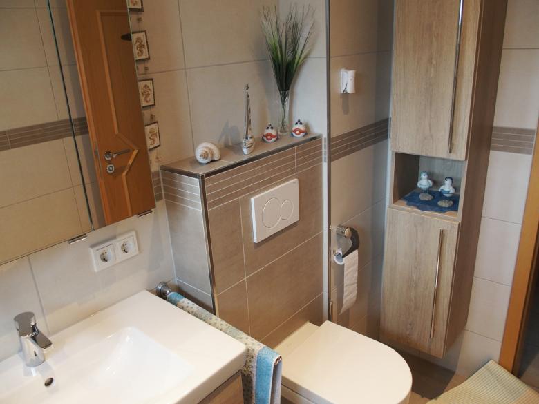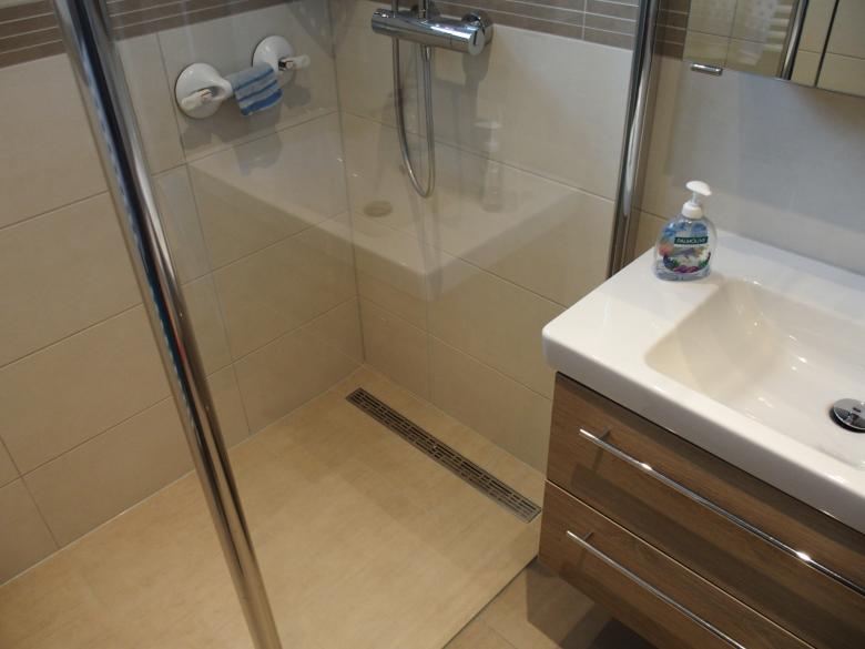 - ein freundliches, helles Bad mit einer großen barrierefreien Dusche.
